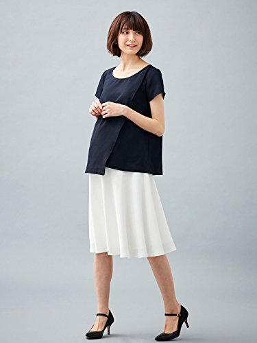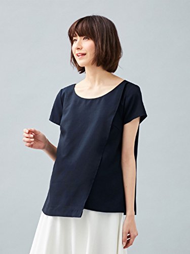 ANGELIEBE エンジェリーベ マタニティ 授乳口付き ウォッシャブル リネン ライクラップ トップス 授乳服 産前 産後 半袖 オフィス L ネイビー 22492 22492270