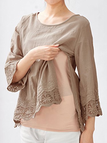 - ●【産前~産後まで使えるスカラップ刺繍ベルスリーブブラウス】肌触りのいい綿100%。両サイドのコンシールファスナーで授乳も楽々です。裾や袖口の透け感が軽やかでこれからの季節にぴったり!コットン素材のナチュラルな雰囲気がこなれ感を演出してくれます。
