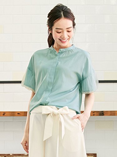 ANGELIEBE エンジェリーベ マタニティ 授乳しやすい 袖チュール ブラウス 産前 産後 妊婦服 トップス フリー ミントブルー 22661 22661400