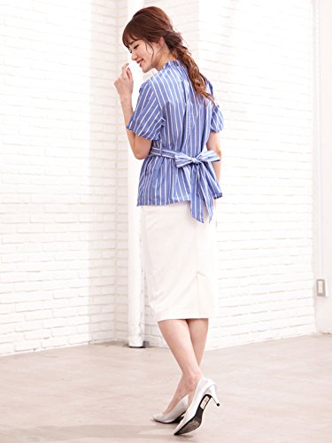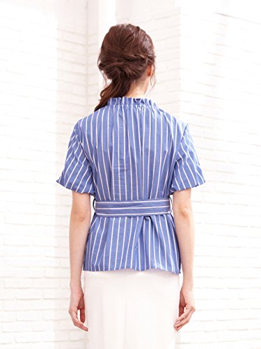 ANGELIEBE エンジェリーベ マタニティ 授乳口付き 首つまり マルチストライプ トップス 授乳服 産前 差後 半袖 ブラウス 通勤 L ブルー 22612 22612170
