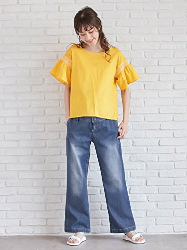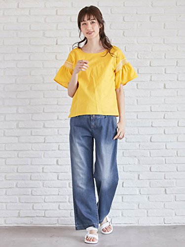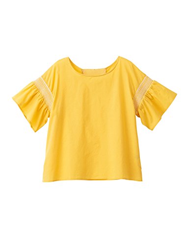 ANGELIEBE エンジェリーベ マタニティ トップス 授乳口付き 袖フレアー スモッキング ブラウス 授乳服 産前 産後 半袖 フリー イエロー 22740200