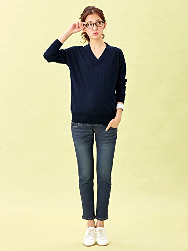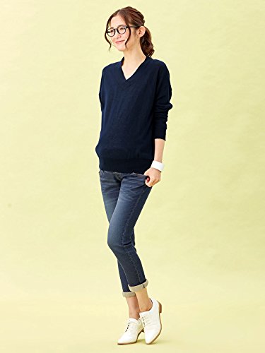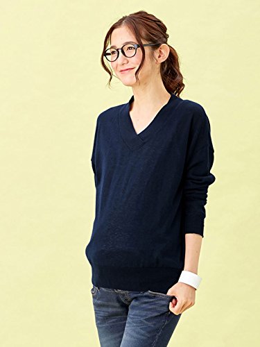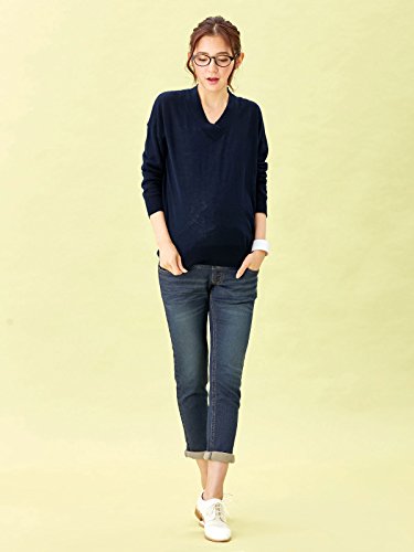 ANGELIEBE エンジェリーベ マタニティ トップス 綿 麻 ウォッシャブル コットン Vネック ニット 妊婦服 産前 産後 長袖 フリー ネイビー 21463 21463300