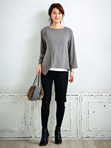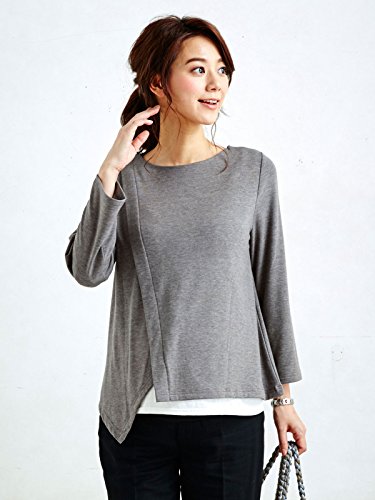 ANGELIEBE エンジェリーベ マタニティ トップス 授乳 しやすい 裏起毛 アシンメトリ 2WAY プルオーバー 産前 産後 妊婦服 長袖 フリー 杢 グレー 21706 21706400