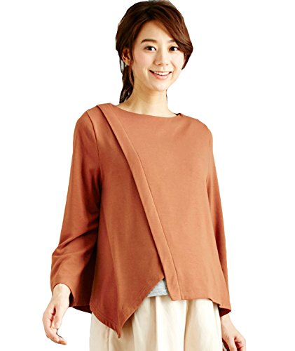 ANGELIEBE エンジェリーベ マタニティ トップス 授乳 しやすい 裏起毛 アシンメトリ 2WAY プルオーバー 産前 産後 妊婦服 長袖 フリー テラコッタ 21706 21706200