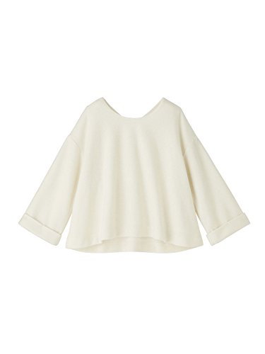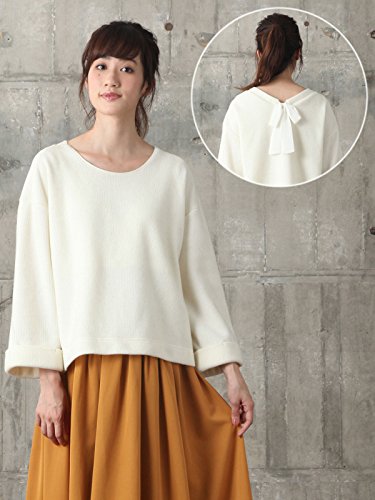 後ろネックの大きなリボンがガーリーなアクセントに。ニットライクなルックスでニットが苦手なママにもおすすめです。自然に広がるAラインシルエットがお腹を目立たせず、フェミニンなシルエットに。トレンドの太めのスリーブは折り返しデザインがアクセントになっています。