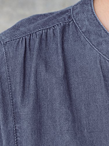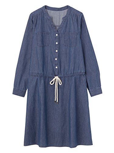 軽くやわらかな肌触りのコットンデニムワンピースは、1枚でコーディネートが完成する便利なアイテム。お腹まわりをカバーするふんわりシルエットですが、すっきりと仕上げた衿まわりでシャープな印象です。