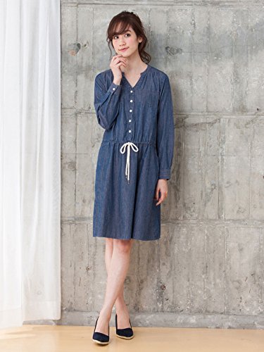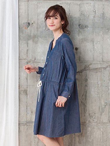 - ●【マリンテイストなウエストリボンがアクセント。産後まで長く着られます】軽くやわらかな肌触りのコットンデニムワンピースは、1枚でコーディネートが完成する便利なアイテム。お腹まわりをカバーするふんわりシルエットですが、すっきりと仕上げた衿まわりでシャープな印象です。