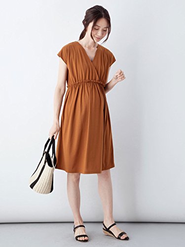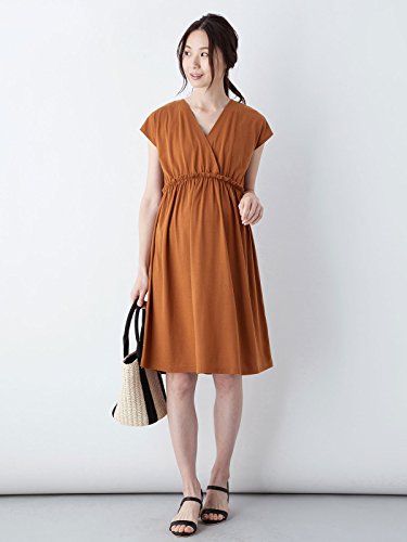 ANGELIEBE エンジェリーベ マタニティ ワンピース 授乳口付き カシュクール ワンピ 授乳服 産前 産後 半袖 フリー ブラウン 22683
