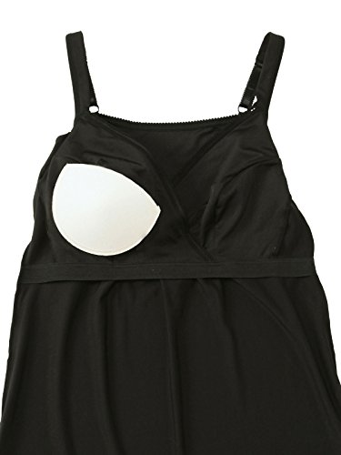 パッド付なのでブラジャーなしで1枚でも着られて便利。前アンダーに幅広のゴムが入っているので、キレイなラインがキープできます。