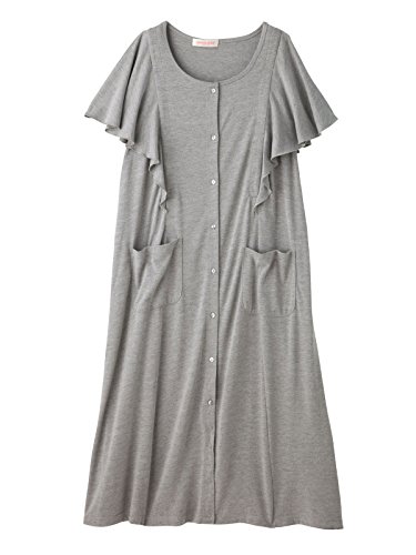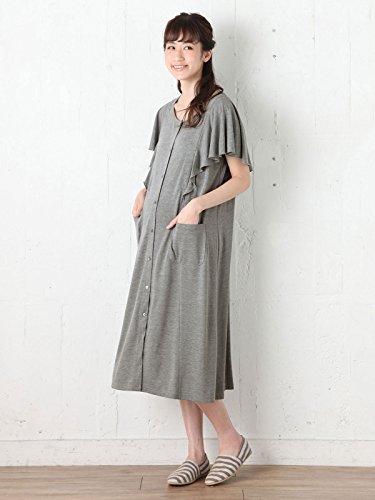 ANGELIEBE エンジェリーベ マタニティ パジャマ 授乳口付き ラッフル スリーブ 2WAY ネグリジェ 妊婦服 産前 産後 半袖 前開き フリー 杢 グレー 21778 21778500