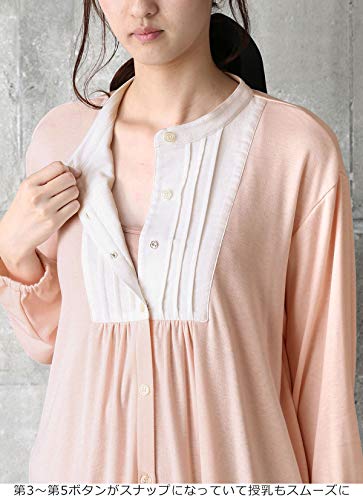 - ●【産前~産後まで使えるヨークピンタック切り替えやわらかパジャマ】裏側の起毛感がやさしい肌触りのフライス素材。第3~第5ボタンがスナップになっていて授乳もスムーズです。