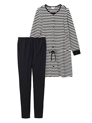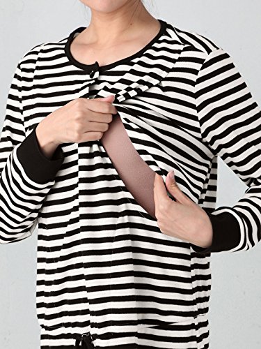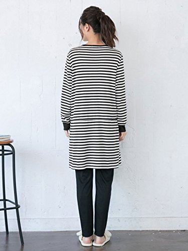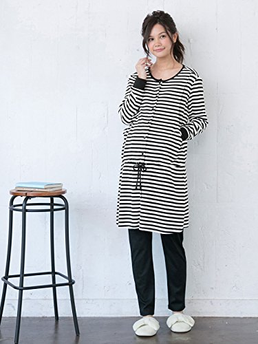 ANGELIEBE エンジェリーベ マタニティー パジャマ 授乳口付き スムース ボーダー × 無地 パンツ ベーシック ナイティ 妊婦服 産前 産後 前開き 長袖 M ブラック 22349 22349160