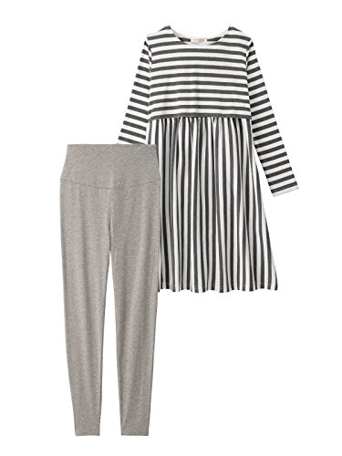 ANGELIEBE エンジェリーベ マタニティ パジャマ 授乳口付き 産前産後 パンツ 付き ボーダーストライプ ナイティ & レギンス セット 授乳服 産前 産後 長袖 M チャコール 22560 22560260