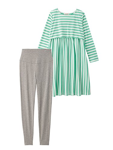 ANGELIEBE エンジェリーベ マタニティ パジャマ 授乳口付き 産前産後 パンツ 付き ボーダーストライプ ナイティ & レギンス セット 授乳服 産前 産後 長袖 L ミント 22560 22560170