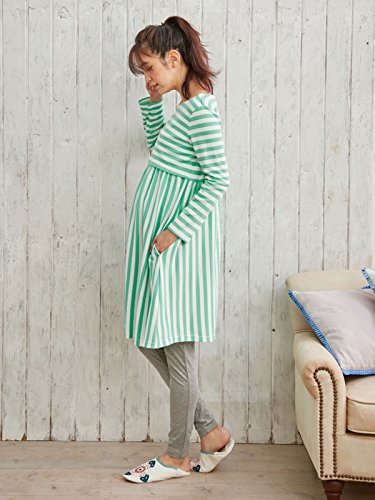 グリーンとグレーのさわやかボーダーがおしゃれ。ふんわりシルエットがお腹もカバー