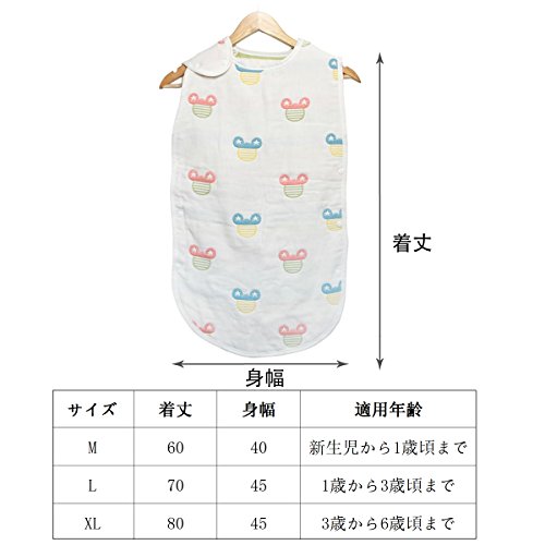 ANNA’S SHOP ふわふわ 冬暖かい6重ガーゼ ベビー スリーパー 冷房/通気性/寝冷え防止 棉100% 新生児から6歳頃まで (M)