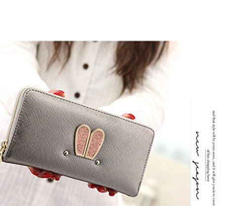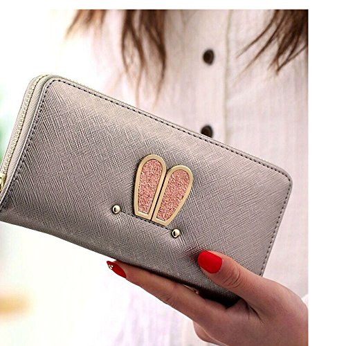 ANPI 長財布 オシャレ うさ耳柄 大容量 ロングウォレット カード スマホ 紙幣 小銭 小さな写真 ファスナー ポケット 学生 レディー 財布 ウォレット (銀色)