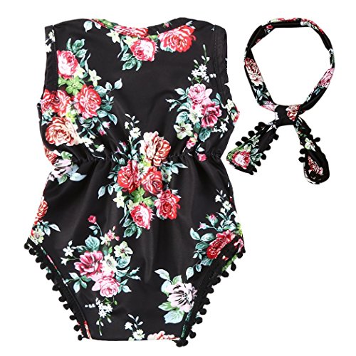 Sakulala(サクララ) ベビー服 ロンパース 女の子 ボディスーツ カバーオール カジュアル 花柄 ノースリーブ ヘアバンド付き 新生児 幼児 0-24ヶ月設