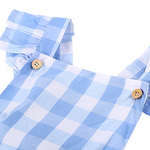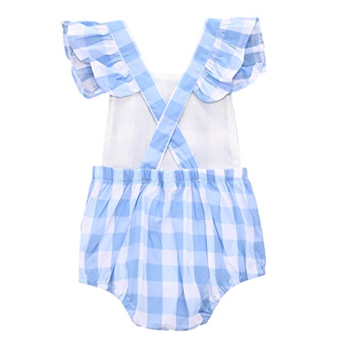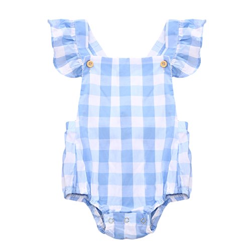 Sakulala(サクララ) ベビー ロンパース 女の子 ベビー服 ボディスーツ カバーオール チェック柄 かわいい 0-18ヶ月設 ブルー