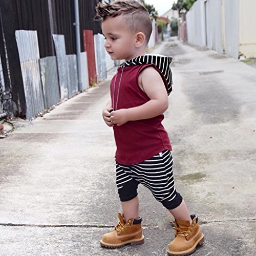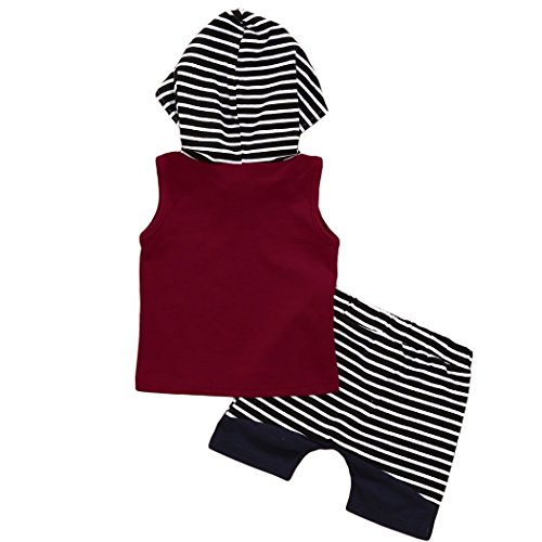 Sakulala(サクララ) ベビー服 子供服 男の子 ボーイズ Tシャツ ショートパンツ 上下セット ノースリーブ カジュアル 綿混紡 縞模様 フード付き カッコイイ 夏