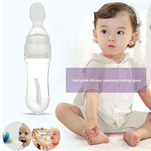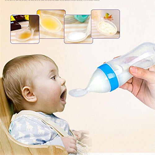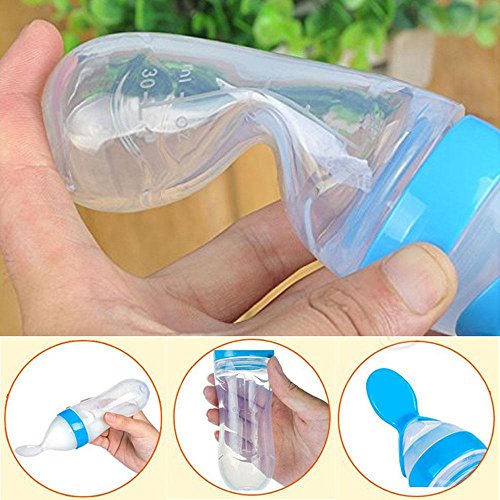 - 90 ml / 3ounce付きのシリコンベビーボトルフィーダー、人間工学的な形は簡単に絞り、ミルクにも最適ダウンが、最後に1口、および式スプーン
