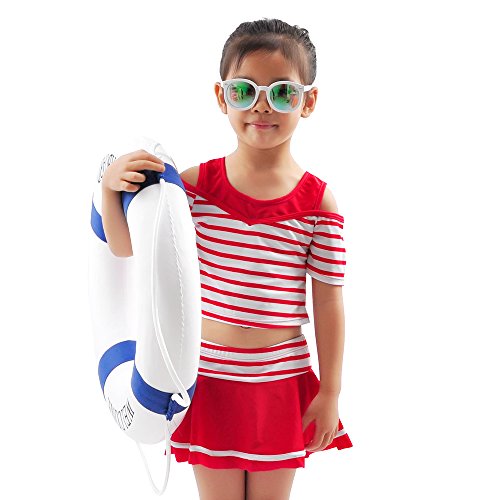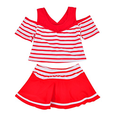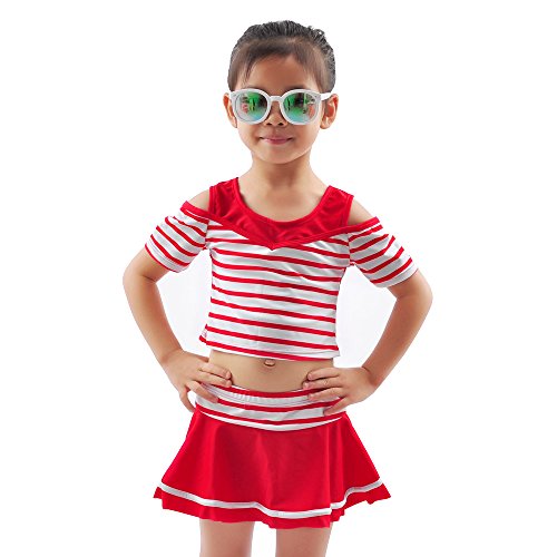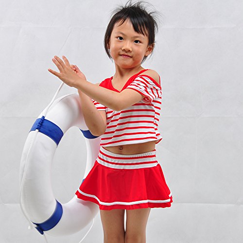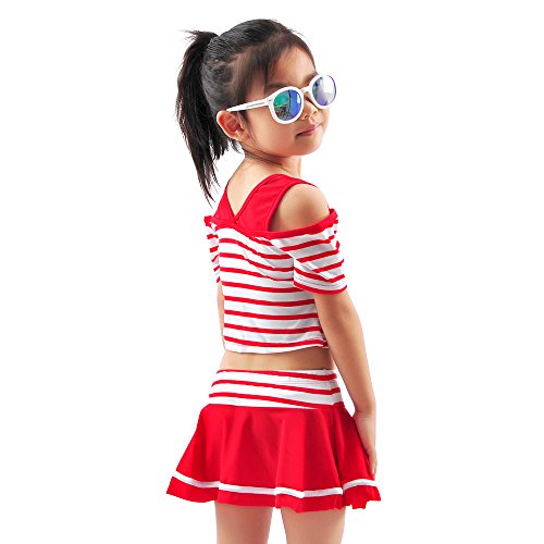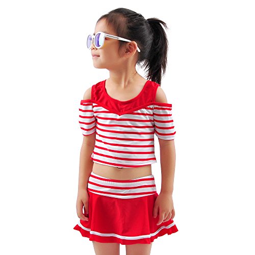 水着 子供 女の子 女児 幼児 セパレート 2点セット ストライプ キッズ 110cm(レッド, M(105-115))