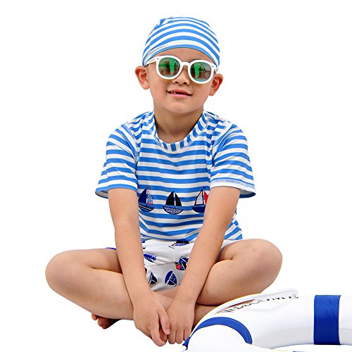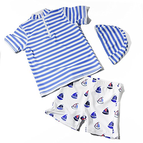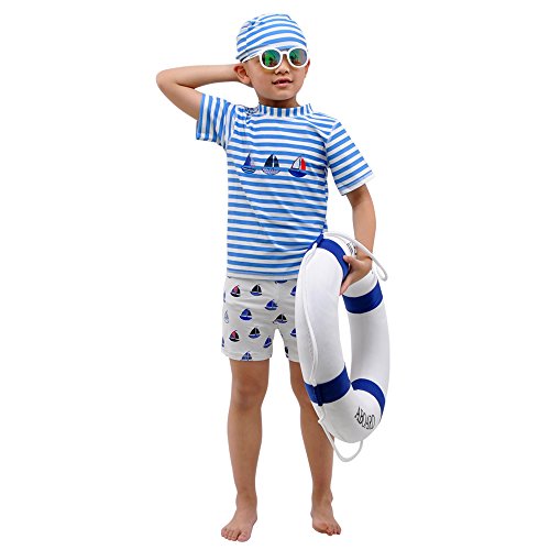 「Bidear」水着上下+帽子 3点セット スイムウェア 上下 かっこいい 安心 便利 人気 おしゃれな子供水着105-120CM
