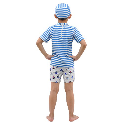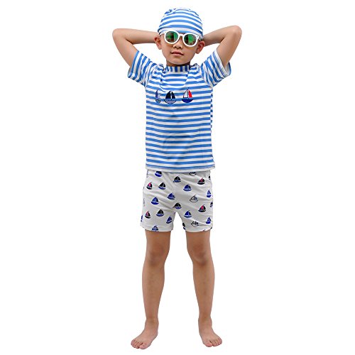 「Bidear」水着上下+帽子 3点セット スイムウェア 上下 かっこいい 安心 便利 人気 おしゃれな子供水着105-120CM