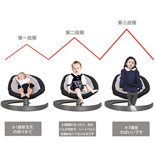 - 適用対象: 1ヶ月 ~ 7歳三つの段階 (1)0~1歳は揺りかごとして使用(2)2~3歳は寝たり座ったりできる(安全ベルトを締めることができない)(3)4~7歳は座ることしかできない 0~7歳まで使用できる