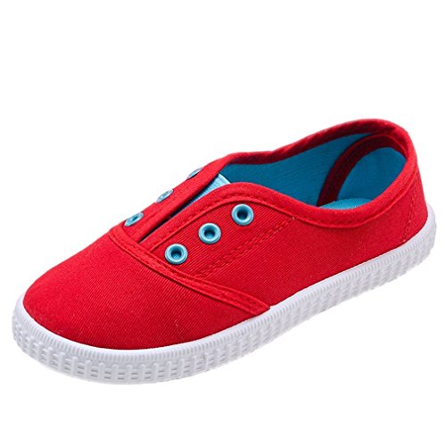 (エレクトリックサーカス) Electric Circus 子供用 キャンバス シューズ カラフル スリッポン 男の子 女の子 キッズ スニーカー 通園 通学 に (18.0cm, レッド)