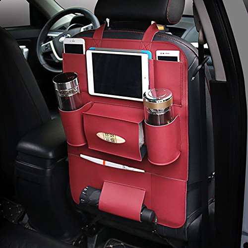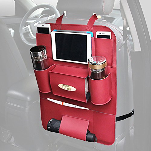 APSOONSELL 車用 多機能 シートバックポケット 収納ポケット 大容量 取り付け簡単 レッド