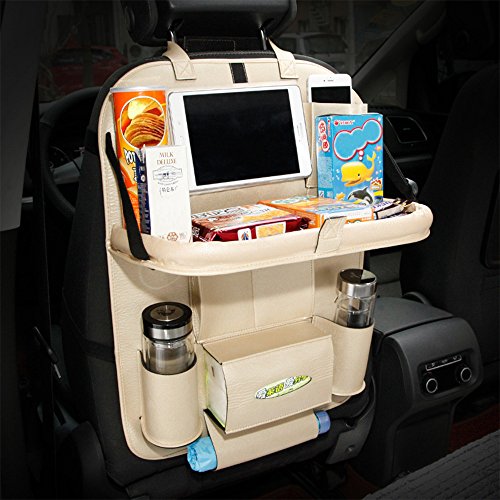 APSOONSELL 多機能 大容量 トレー付き 車載収納ポケット IPAD対応可 PUレザー製 ゴールド