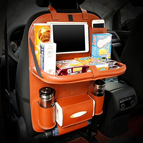 APSOONSELL 多機能 大容量 トレー付き 車載収納ポケット IPAD対応可 PUレザー製 ブラウン
