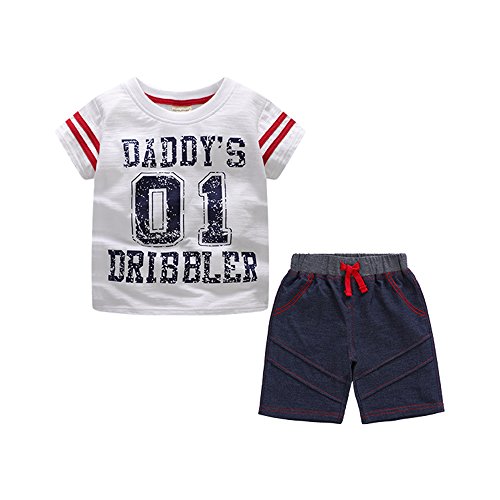 AQI ベビー服 男の子 半袖 夏 綿生地 上下セット(tシャツ+ショートパンツ) ベビー tシャツ 男の子 ショートオール 半袖 ショートパンツ キッズ パンツ キッズ セットアップ 半袖 4サイズ 安全認証 カジュアル/お出かけ/出産祝い/プレゼント/誕生日80CM-90CM-100CM-110CM(12ヶ月-4歳) (白色, 80CM/12-18ヶ月)