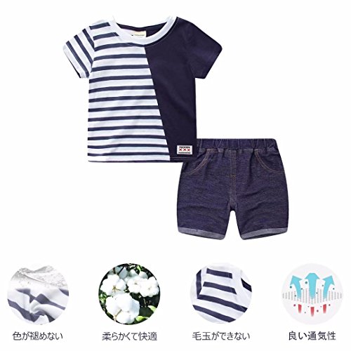 AQI ベビー服 男の子 半袖 夏 綿生地 上下セット(tシャツ+ショートパンツ) ベビー tシャツ 男の子 ショートオール 半袖 ショートパンツ キッズ パンツ キッズ セットアップ 半袖 4サイズ 安全認証 カジュアル/お出かけ/出産祝い/プレゼント/誕生日80CM-90CM-100CM-110CM(12ヶ月-4歳) (青白色, 100CM/3歳)