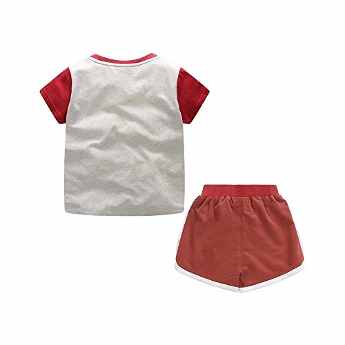 新発売 100%綿 小さな怪獣 2点セット(tシャツ+ショートパンツ) 夏新作 おしゃれ ベビー服 男の子 半袖 赤ちゃん服 幼児 4サイズ キッズ服 半ズボン 子供服 ロンパース 男の子 カバーオール 安全認証 満月/出産祝い/プレゼント/誕生日/お宮参り80CM-90CM-100CM-110CM(12ヶ月-4歳) (赤色, 100CM/3歳)