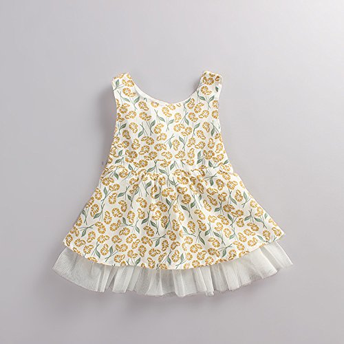 かわいい 花柄 蝶結び 子供 ワンピース/ドレス 無袖 おしゃれ ベビー服 女の子 赤ちゃん服 幼児 5サイズ キッズ服 ベビー ワンピース/ドレス 女の子 ロンパース 女の子 カバーオール 満月/出産祝い/プレゼント/誕生日/お宮参り73CM-80CM-85CM-90CM-100CM(0ヶ月-3歳)(黄色) (黄白色, 90CM/1歳-2歳)