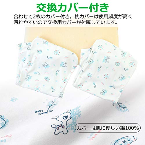 AQshop ベビーまくら 向き癖 寝返り 絶壁 防止 枕 快眠 メモリークッション ピロー 綿100% 枕カバー 2枚付 45×25×3cm(新生児 2ヶ月〜3歳向け)【メーカー90日保証付】
