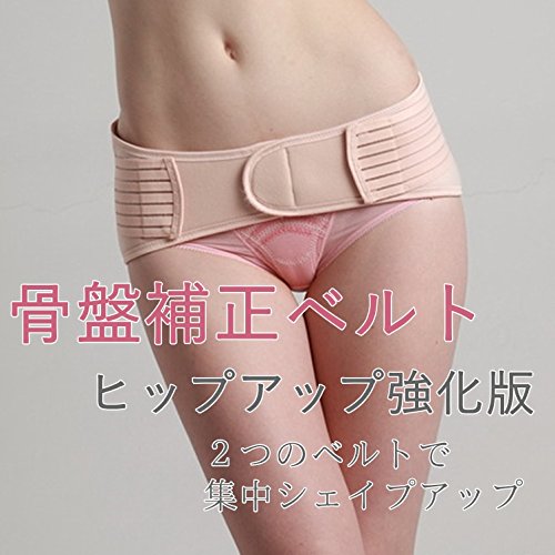 (アクアランド) AQUALAND 骨盤補正ベルト 腰 骨盤矯正 ヒップアップ強化 産後 サポートベルト 二重ベルト (Mサイズ, ベージュ)