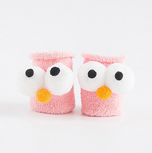 (アクアランド) AQUALAND かわいい ユニーク 目玉 2足組 こども靴下 キッズ 赤ちゃん ベビー ソックス あたたかい ふくろう キャラクター 1~3歳児向け (1~3歳児向け, ピンク)