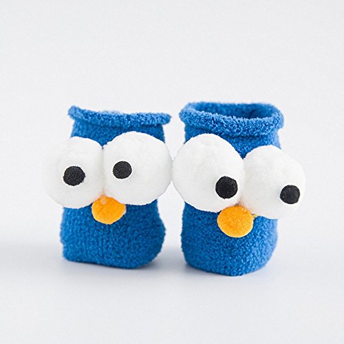 (アクアランド) AQUALAND かわいい ユニーク 目玉 2足組 こども靴下 キッズ 赤ちゃん ベビー ソックス あたたかい ふくろう キャラクター 1~3歳児向け (1~3歳児向け, 青 あお)