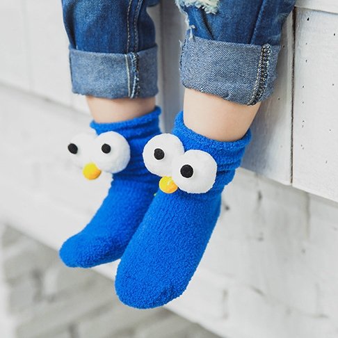 - 飛び出た目玉と黄色い鼻がユニークな子供用靴下です♪