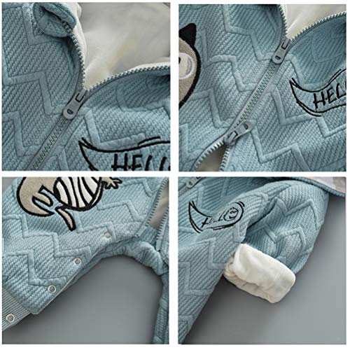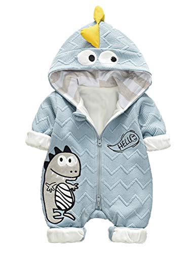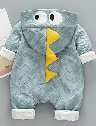 ARABOYO ベビー ロンパース 長袖 vネック フードつき 恐竜 暖かい 裏起毛 かわいい 新品 女の子 男の子 秋 冬(3-14ヶ月用)