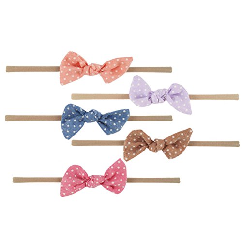 ARABOYO ベビー ヘアバンド 5点セット ドット 水玉 蝶結び 精巧 簡単 飾り 撮影記念 ピクニック 誕生日 女の子 カチューシャ 柔らか かわいい 四季(1-4歳用)