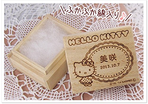 ■昔からへその緒の保存に用いられてきた桐箱に、お名前と生年月日、かわいいキティちゃんを彫刻して、世界にひとつのオリジナルキティちゃんへその緒ケースに。ママと赤ちゃんの大切な思い出を、かわいく保存できますよ。