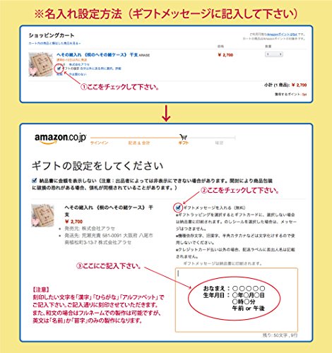 - 名入れの彫刻文字指定には「ギフトの設定」をチェックして入力欄にご記入ください
