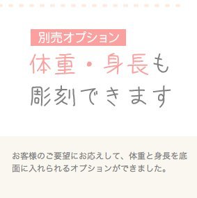 - ハローキティへその緒ケースの身長・体重、彫刻オプションとなります。