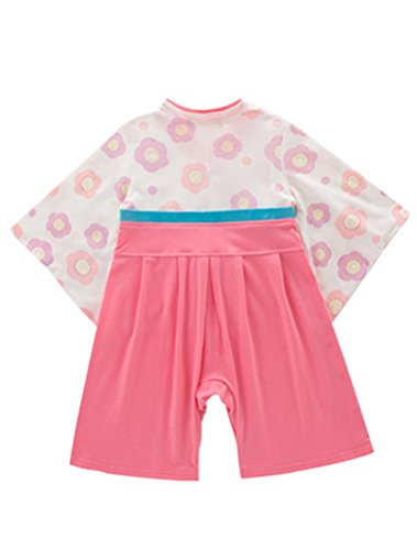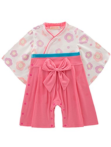 ARAUS 女の子 和装 ベビー和服 フォーマル 浴衣 ロンパース 和風 全開き 半開き ベビー服 長袖 蝶結び 袴風 着物 カバーオール キッズ ガールズ 女の子 夏祭り 盂蘭盆(6-18ヶ月用) (9-12ヶ月, ピンク)