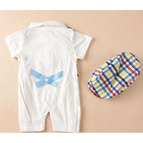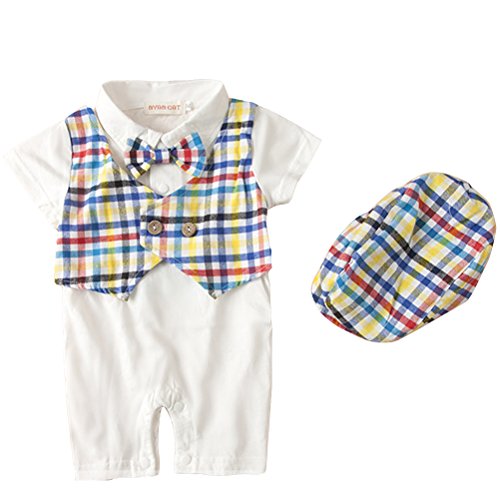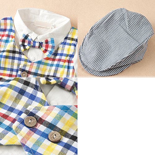 ARAUS 子供 ベビー シャム服 紳士服 洋服 ロンパース 帽子 チェック 蝶ネクタイ付き 幼児用 子供 男の子 春 夏 2セット(ロンパース+帽子)(3-18ヶ月用) (3-6ヶ月, カラーチェックベスト)