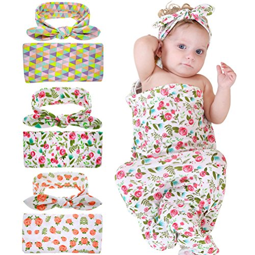 ARAUS 赤ちゃん ベビータオル おくるみ パーセルタオル ヘッドバンド 花柄 プリント スカーフ ウサギ耳 ヘアバンド 頭飾り キッズ 子供 女の子 男の子 出産祝い 冷房対策 オーガニック アフガン アフガン セレモニー 春 夏 秋 2枚セット(3ヶ月-1歳用) (フリーサイズ, オレンジのローズ)